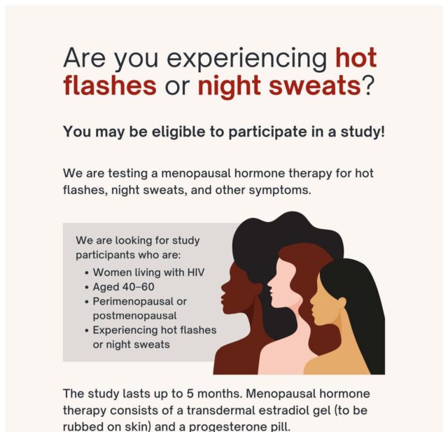 Hormone therapy is considered to be the most effective therapy for hot flashes and night sweats and the most appropriate choice to prevent bone loss at the time of menopause for women without HIV. However, the usefulness of hormone therapy has not been specifically studied in women living with HIV.